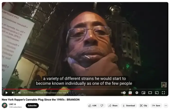 When those guys boasted about copping jars of Harlem’s finest cannabis from Branson, their braggadocio had roots in something tangible. The average person didn’t have that beeper number, and access was a bragging right. If you were smoking his trees, then you could claim superior status over those who were still separating seeds out of most bags they grabbed. In other words: ordinary people like me, and, if you were alive and burning at the time, probably you too.